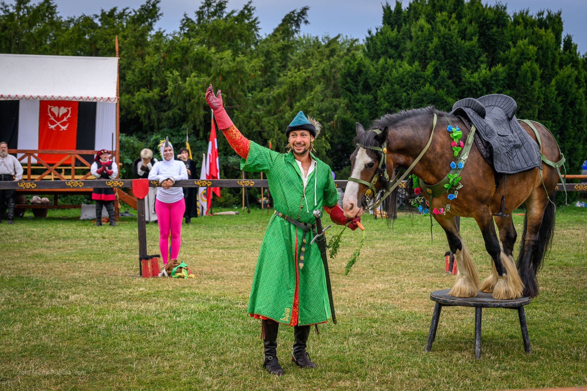 Čekají vás nádherní koně, rytíři v plné zbroji, třpyt oceli a ladné pohyby dam v honosných róbách. Atmosféra středověku konce 14. století ožívá v každém detailu od výstroje až po jezdecké disciplíny.